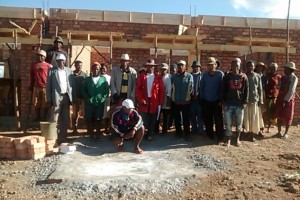 Réunion d’avancement de chantier avec les parents d’élève. Décision de supprimer les petites ouvertures type aération prévues le long du plafond. Le climat froid du village est à la base de cette décision. Les plans UNICEF de l’école étaient prévus pour une région plus chaude certainement.